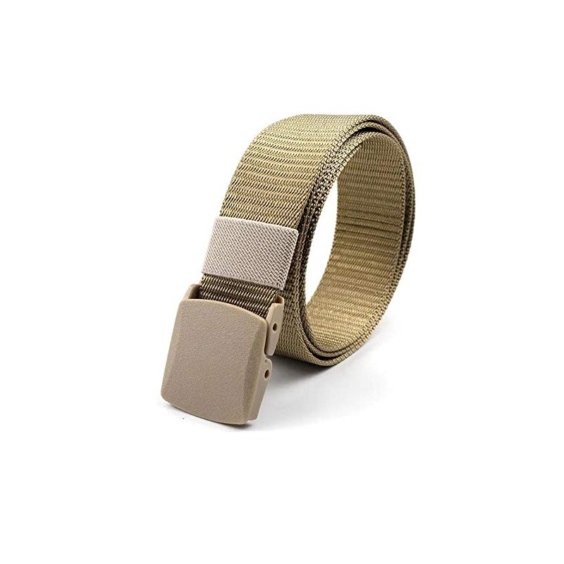 Miobo Unisex Nylon Canvas Belt for Men and Women, Infinitely Adjustable, Plastic Buckle, beige