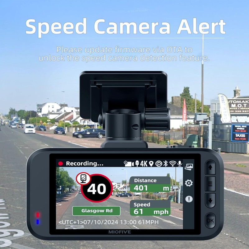 - DASH CAM WITH GPS: Equipped with built-in GPS, this wireless dash cam records and allows you to view real-time speed and compass information on the 3" IPS LCD. It accurately captures your driving route, location, and speed as additional evidence directly in the video. You can even configure all the settings of your top rated dash camera within our app. We provide over-the-air firmware updates for free through our Miofive app.