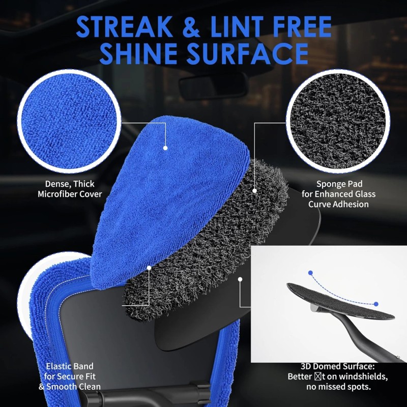 - Revolutionize Car Care with Windshield Cleaner: Contoured to fit any windshield curve, Ultra-dense microfibers erase grime effortlessly, Stable elastic band for non-slip wipe, Innovative sponge layer conforms to glass, redefining car windshield maintenance with a streak-free, high-performance tool.