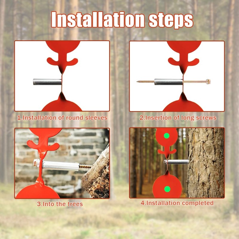 5. 【Easy to install】: By combining the rotating target piece with the round sleeve and fixing it with the long hex screw, then insert the device into the tree from the side.