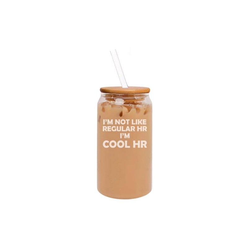 MIP 16oz Can Shaped Glass Iced Coffee Cup with Bamboo Lid and Straw Gift I'm Not Like Regular HR I'm Cool HR Funny Human Resources