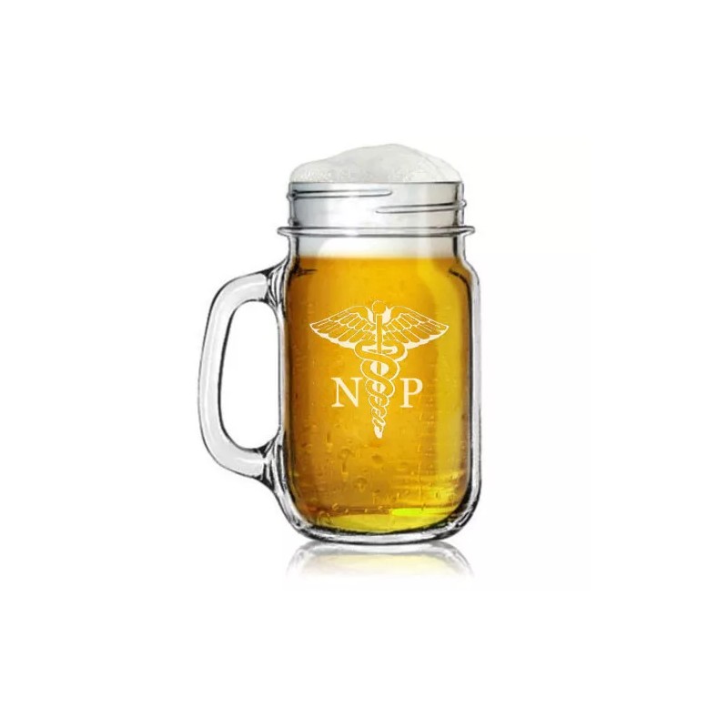 MIP 16oz Mason Jar Glass Mug w/ Handle NP Nurse Practitioner
