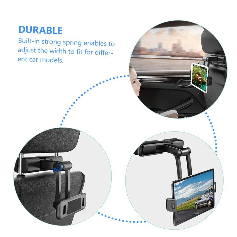 tablet headrest mount want a kind of car headrest mount for tablet and phone? want to view your device in different angle? This can be your .rotating tablet phone holder Really practical and useful, just mount it onto your car seat