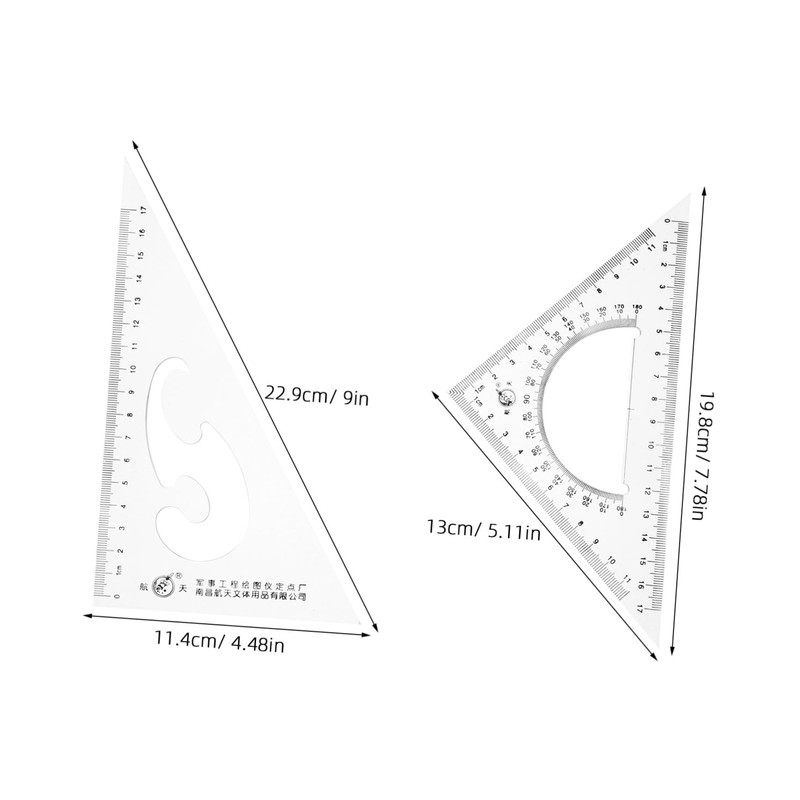 With its clear and precise markings, this aerospace triangle set square is ideal for detailed drawing and drafting. The set includes various rulers and triangles, each designed to help you achieve accurate measurements and angles. Its ergonomic design ensures comfort during use, making it a practical choice for extended projects.