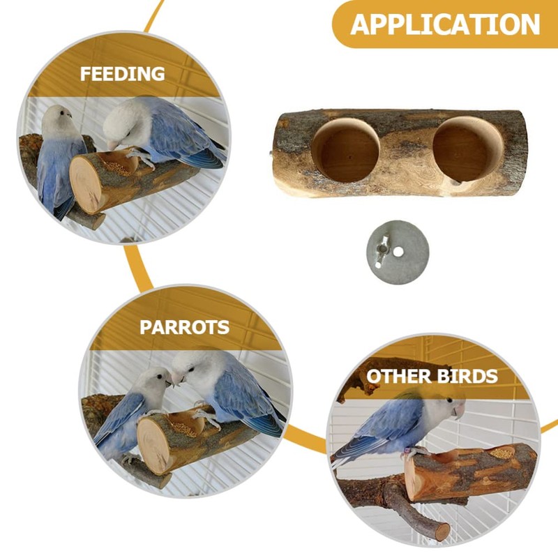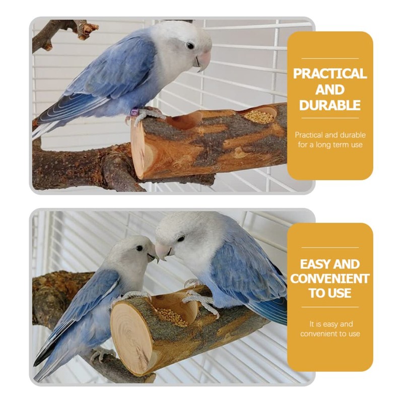 Mipcase Standing Perch Feeder for Birds Apple Wood Bird Cage Feeder Parrot Feeding Bowl