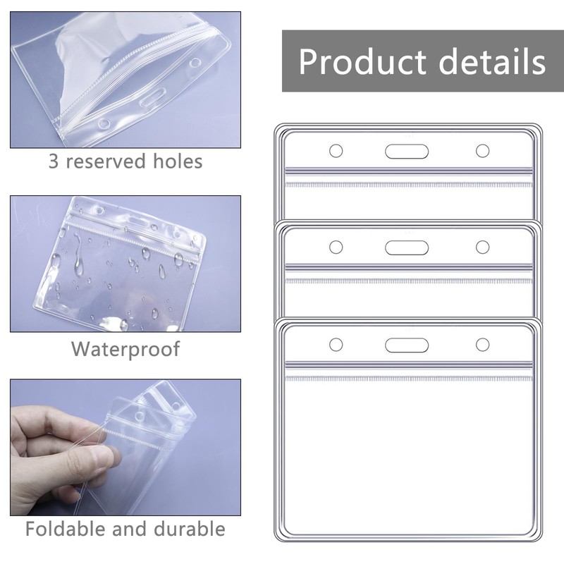 - Easy to use: plastic sleeves for cards have three pre-punched holes, the holes on both sides can be used for lanyards and the hole in the middle for clips. Meet different wearing needs. Design with rounded corners. Design with rounded corners, not easy to scratch, easy to open and close.