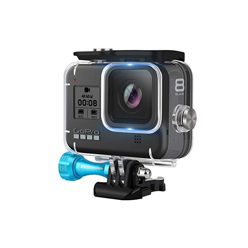 - ►★★GET MORE FOR YOUR MONEY – 1 x MiPremium Waterproof Housing Case for ( GoPro Hero 8 Black), 1 x Thumbscrew made of aluminium alloy which is 100% anti-rust in blue color, 1 x Quick pull removable socket/buckle. MiPremium Waterproof housing case is backed by 100% guarantee that you are fully satisfied with your product or receive your money back.