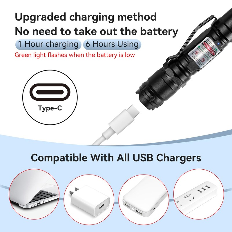 - [Rechargeable Design] The light flashes when the battery is low. Just rotate the lid off the bottom of the product and you can charge it, It is compatible with all USB-A chargers, Whether it's a computer, a laptop, a phone charger, a powerbank, or a plugboard, you can charge it with a USB port. Charge it for half an hour and you can use it for hours on end.[002]