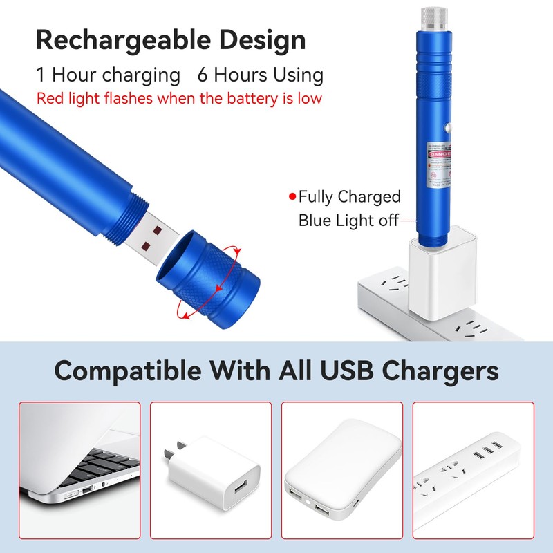- [Rechargeable Design] The light flashes when the battery is low. Just rotate the lid off the bottom of the product and you can charge it, It is compatible with all USB-A chargers, Whether it's a computer, a laptop, a phone charger, a powerbank, or a plugboard, you can charge it with a USB port. Charge it for half an hour and you can use it for hours on end.[001-Blue Shell]