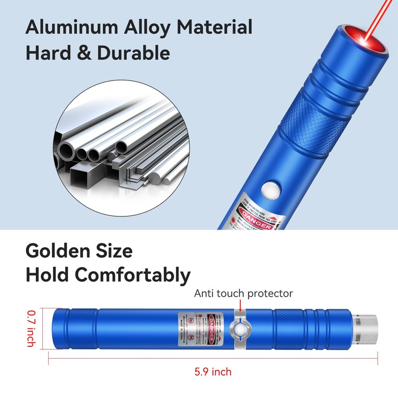 MIPREZT [Professional] Rechargeable Red Beam Flashlight Long Distance Range for TV/LED/LCD Screens Tactical Flashlights Presentation Office/Outdoors/Astronomic/Construction [001-Blue Shell ]