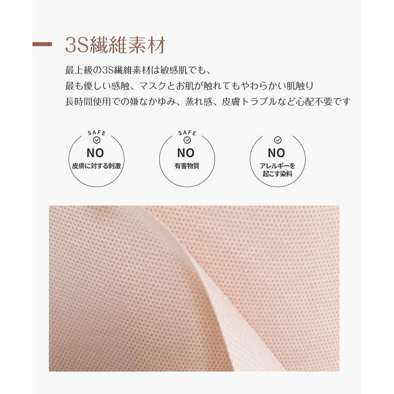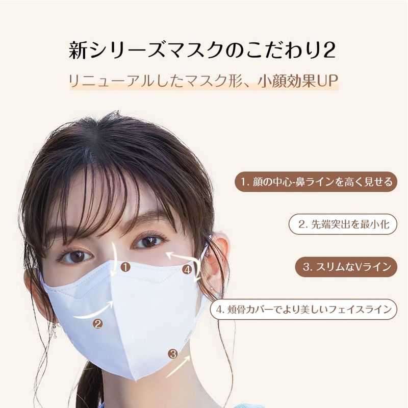 • 【小顔効果がある】人体工学に基づいた3D立体構造設計で、「小顔効果がある」と、デザイン性だけでなく、マスクの内側の口元も空間があるため、「口紅やメイクが付きにくい」です。気になる鼻筋の部分は調整可能な柔らかのワイヤーがあって、どんな顔でも密着性を高め、空気が漏れる隙間を無くすとともに、通気性の良い特殊な素材を使用している為、「メガネが曇りにくい」「呼吸がしやすい」など機能性も大好評いただいている安心安全にこだわったマスクです。