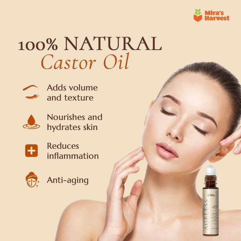 Mira’s Harvest Ageless- Castor Oil Roll On Facial Oil For Under Eyes Face and Nails - Organically Grown, Cold-Pressed, Hexane Free- Powerful Rejuvenating Oil-10mL