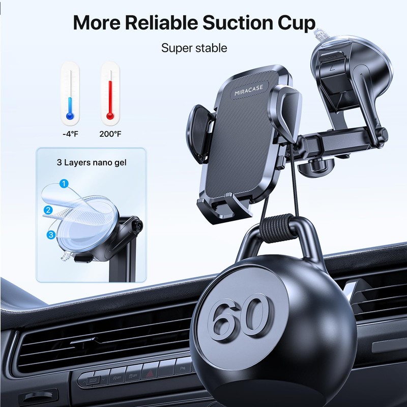 • Dedicated Service for Your Peace of Mind: At Miracase, customer satisfaction is our top priority. Our professional support team is available to assist with any questions before or after purchase. With easy suction cup cleaning and maintenance tips, we ensure your phone holder stays in optimal condition for long-term use, giving you peace of mind when choosing our product.