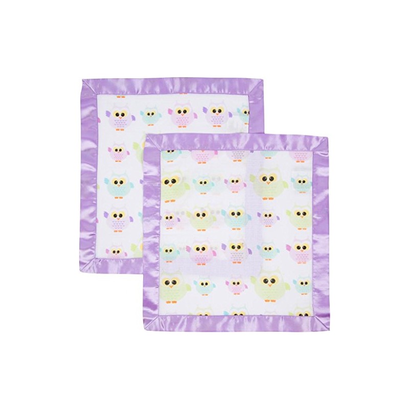 Miracle Blanket Soft Muslin Security Blanket Newborn Nursery Sleep Essential - Pack of 2 Warm Wraps (Owls with Purple Trim)
