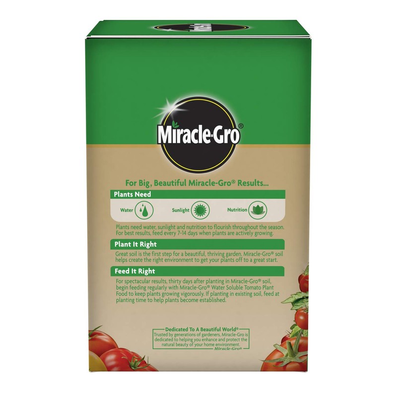 Miracle-Gro Water Soluble Tomato Plant Food instantly feeds to grow bigger, more bountiful tomatoes and vegetables compared to unfed plants. Use our plant food with the Miracle-Gro Garden Feeder or any watering can, and feed every 1-2 weeks. Safe for all plants when used as directed. Miracle-Gro Water Soluble Tomato Plant Food will help you get better results.