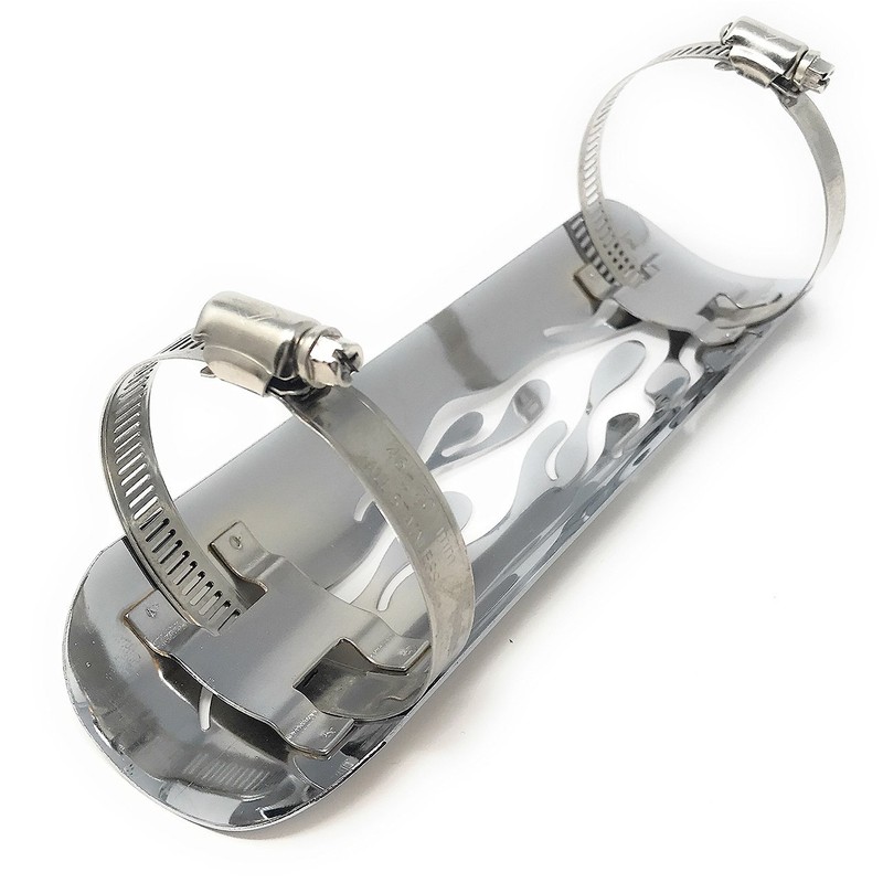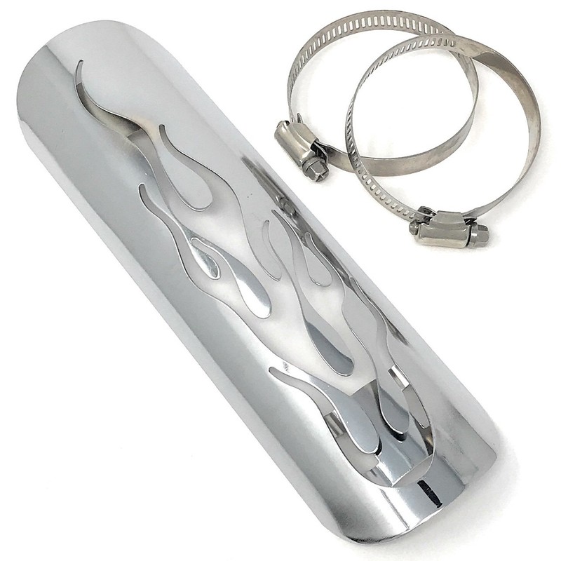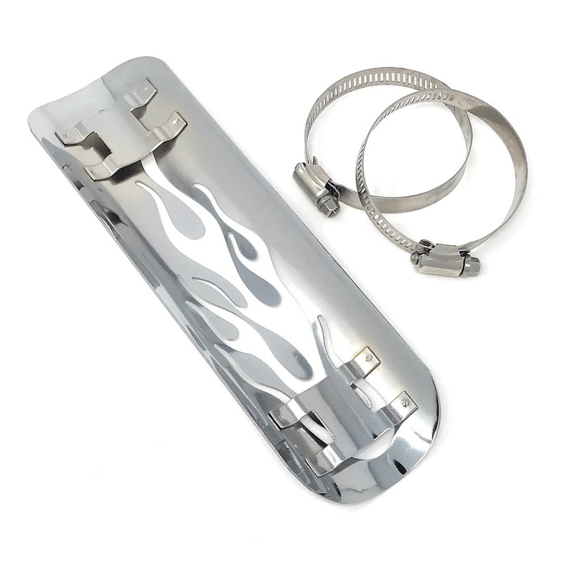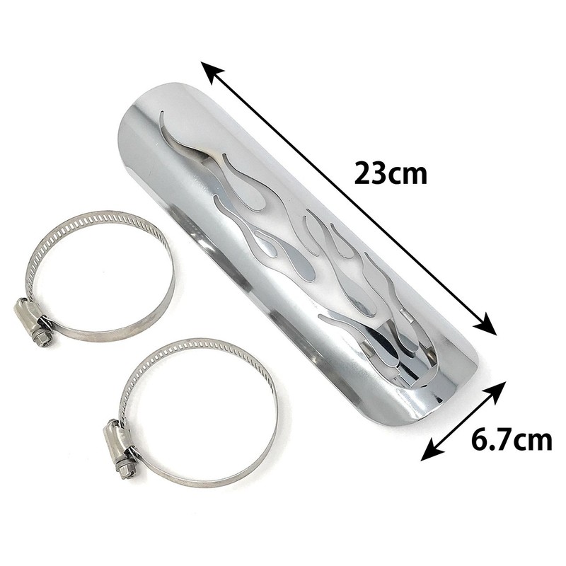 Mirai.2022 Motorcycle Muffler Guard Exhaust Pipe Muffler Cover Fire Flame Pattern Stainless Steel Silver Universal