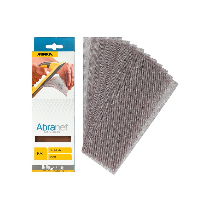 - Mirka Abranet - the original dust-free sanding net sheets 3x9 inch / 80x230mm, Grit 240, 10 pieces, Hook and Loop