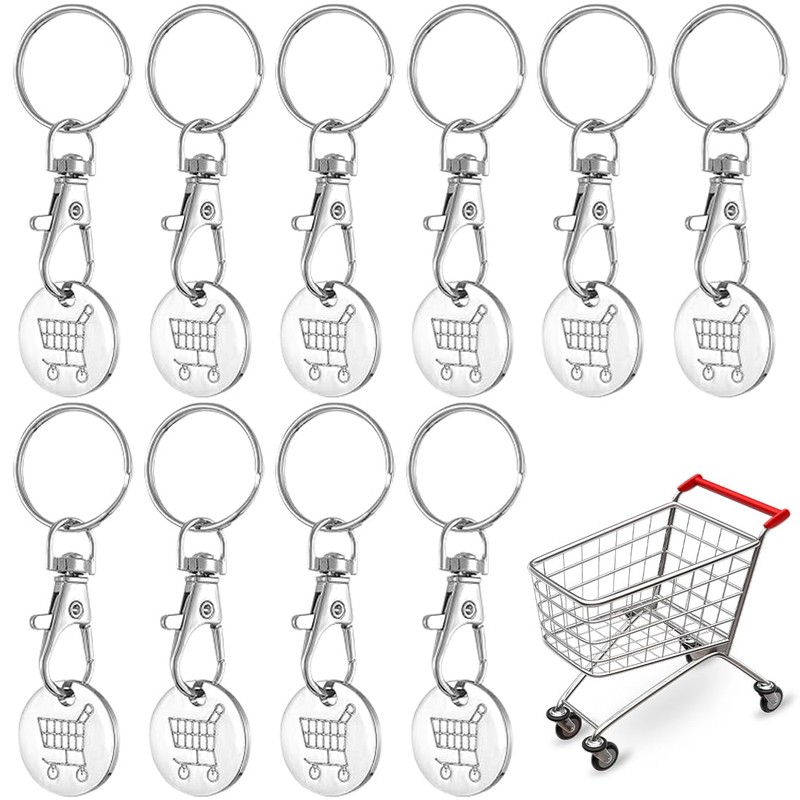 MIRKUZI Kaufläden & Zubehör 10 Shopping Trolley Tokens, Metal Keyring with Shopping Trolley, Stainless Steel Shopping Trolley Releaser, Suitable for All Shopping Trolleys