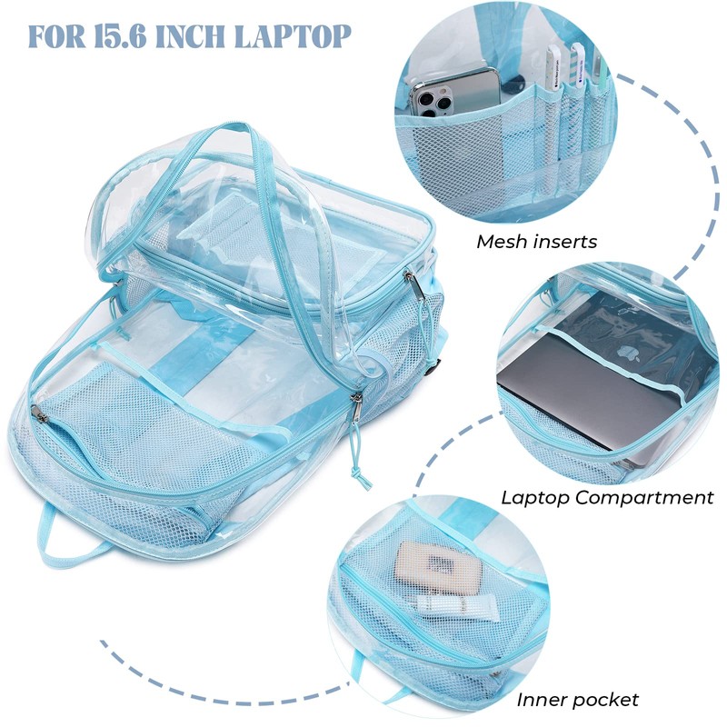 - Convenient: This transparent backpack allows you find what you need more easily, and you don't need to open the backpack when you need to check through security, it helps you make the process go more fast and smoothly.