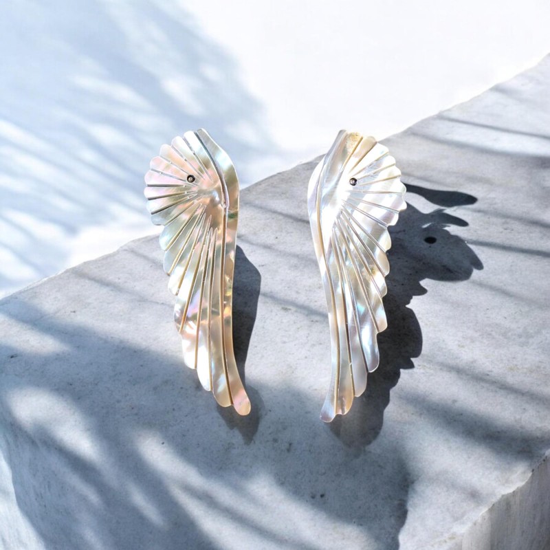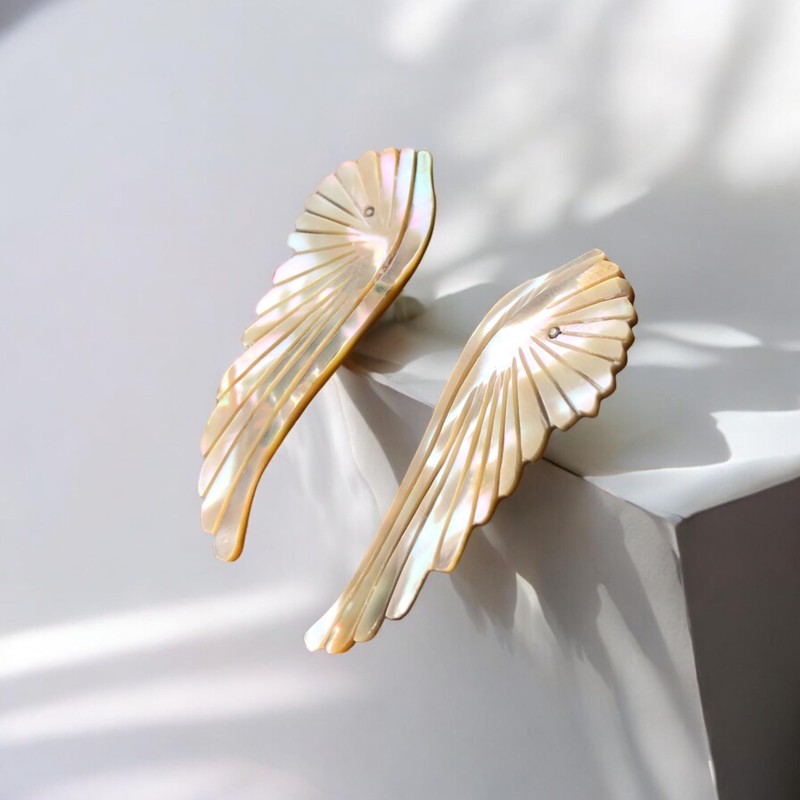 Mirlo Blanco - Aretes alas para mujer Hechos a mano en Concha de abulón y pos...