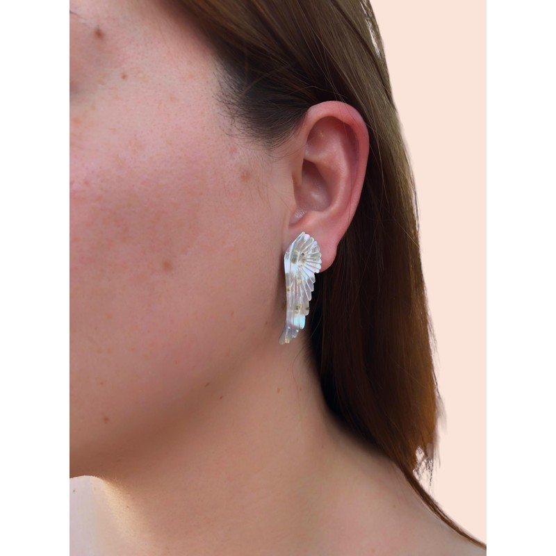 Mirlo Blanco - Aretes alas para mujer Hechos a mano en Concha de abulón y poste de acero inoxidable Artesanalmente (Concha)