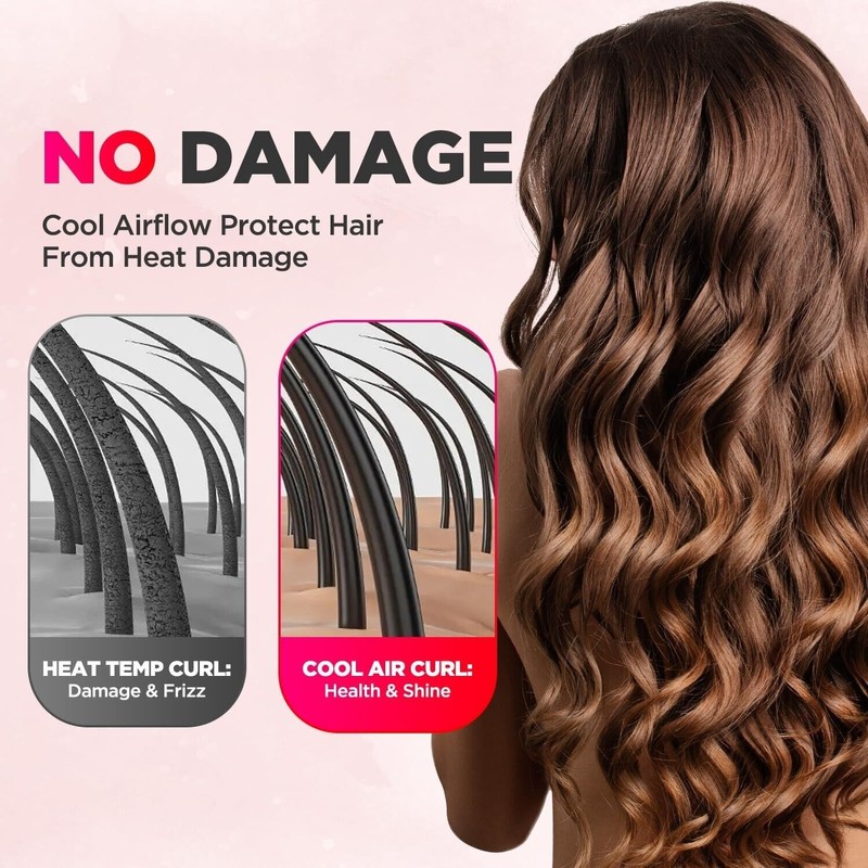 - 【360° AIRFLOW STYLER TECHNOLOGY】The curling iron features 360° airflow technology & 100+ ionic cool air vents, Its built-in fan allows negative ion cool air to flow outside of the barrel to instantly cool and lock in your curls. Saves you styling time and reduces hair heat damage. Up to 3 million units of negative ions help lock in moisture and prevent static buildup to eliminate frizz and enhance shine.