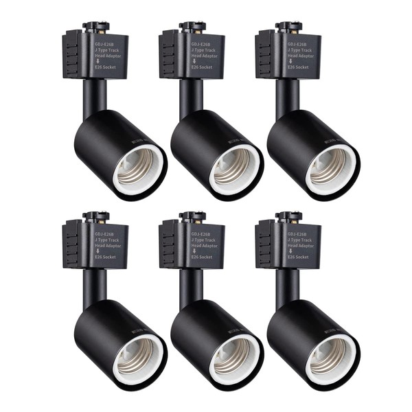 mirrea J Type Track Lighting Head to E26 Medium Screw Base Adapter Light Direction Adjustable Pack of 6 (Black)