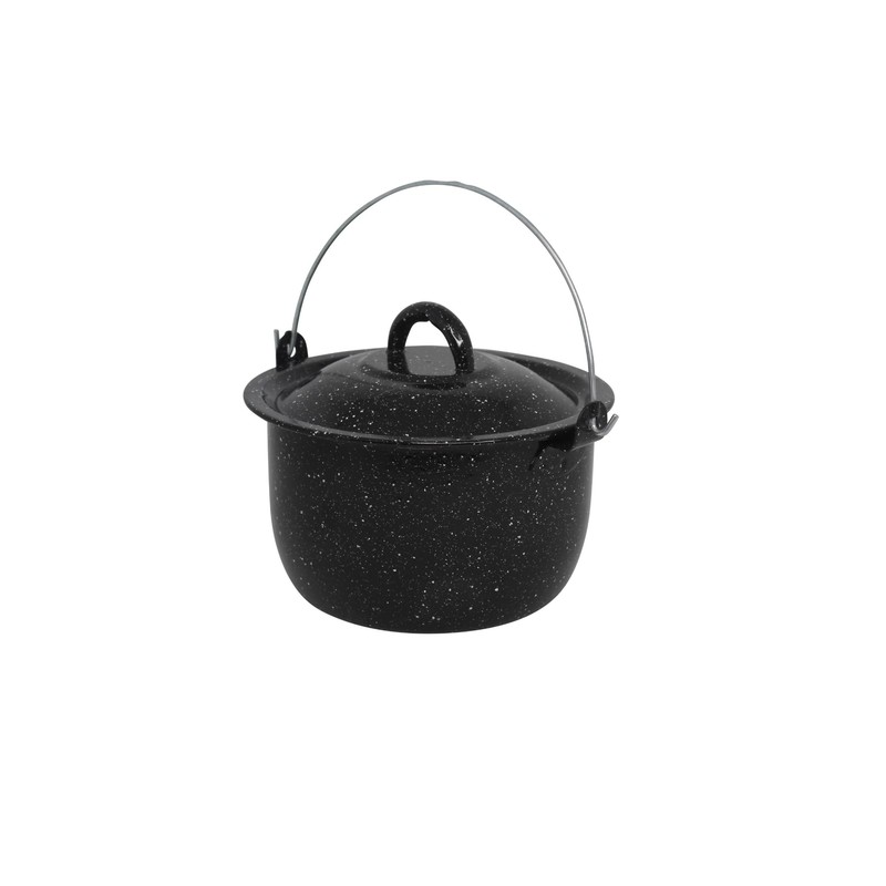 - MADE OF STEEL WITH ENAMEL COATING: Featuring a black speckled finish; this pot is durable and stylish; the handle allows for comfortable grip and easy transport