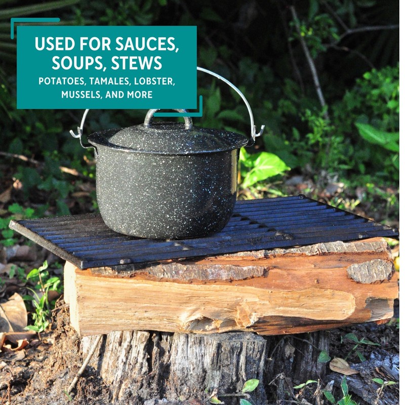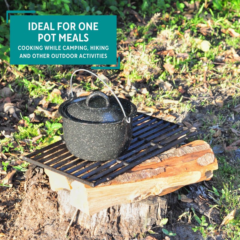 - IDEAL FOR ONE POT MEALS, COOKING WHILE CAMPING, HIKING AND OTHER OUTDOOR ACTIVITIES: This enamel pot is a must-have for any kitchen; perfect for those who love to cook and need reliable tools for both indoor and outdoor adventures