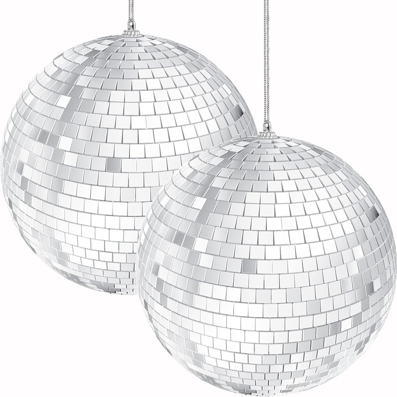 Mirror Disco Ball 4" Inch 2-Pack, Silver Hanging Ball with Attached String for Ring, Reflects Light, Fun Party Home Bands Decorations, Party Favor (2-Pack) | The Dreidel Company