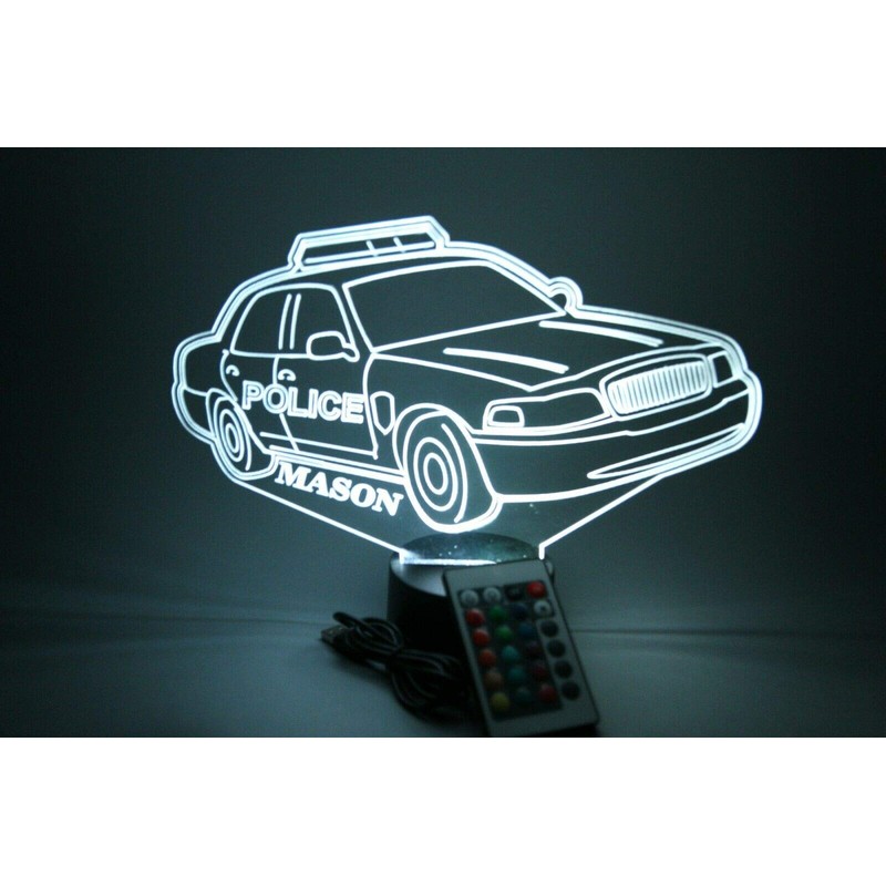 MIRROR MANIA Vehicles Planes Trains and Automobiles Name Night Light Up Lamp Shape LED Personalized Custom Made Table Lamp, It's Wow, with Remote 16 Colors Changing, Great Gift (Police Car)