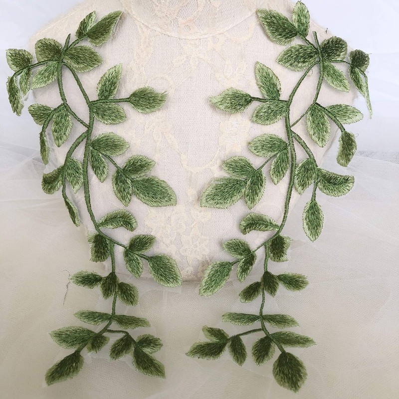 Mirror Pair Green Forest Leaves Applique Lace Vine Motif Trims Embroidery Wood Patches…