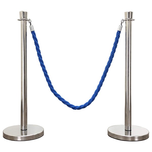 Mirror Taper Top Rope Stanchion in 3 pcs Set, VIP Crowd Control (60" Blue Braided)