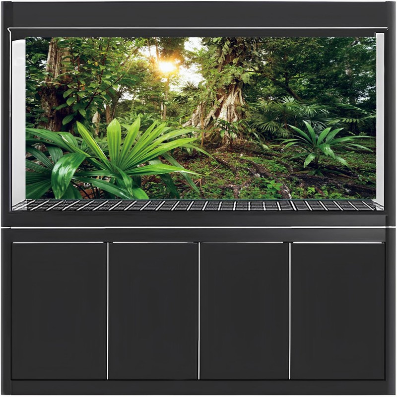 MIRRORANG 120 x 50 cm Deep Forest Terrarium Background Sunshine Tropical Plants Trees Aquarium Background Rainforest Reptiles Habitat Background Vinyl