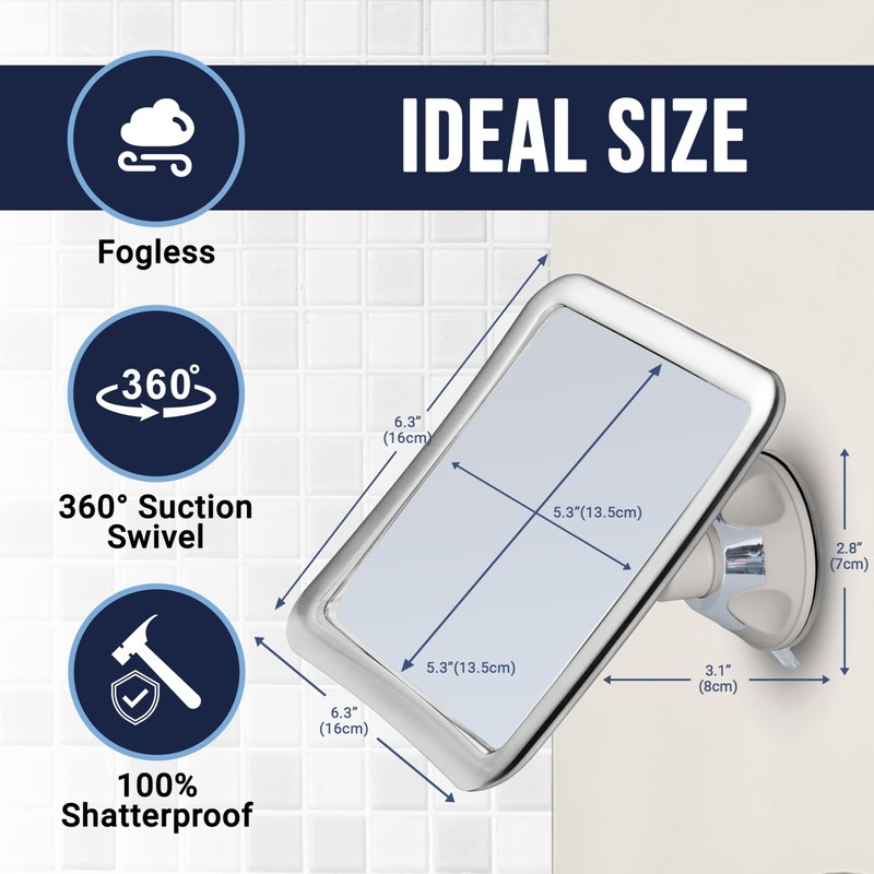 • LIGHT AND COMPACT making it super convenient for travel. Your mirror is also SHATTERPROOF which means you'll never have to deal with broken glass and risk accidentally hurting yourself in the shower.
