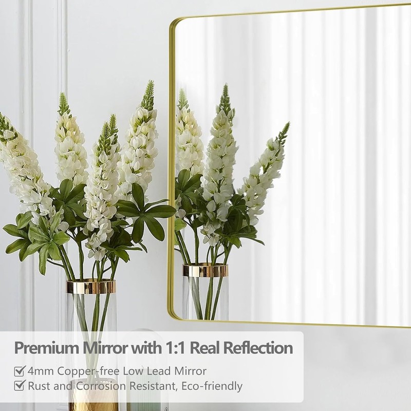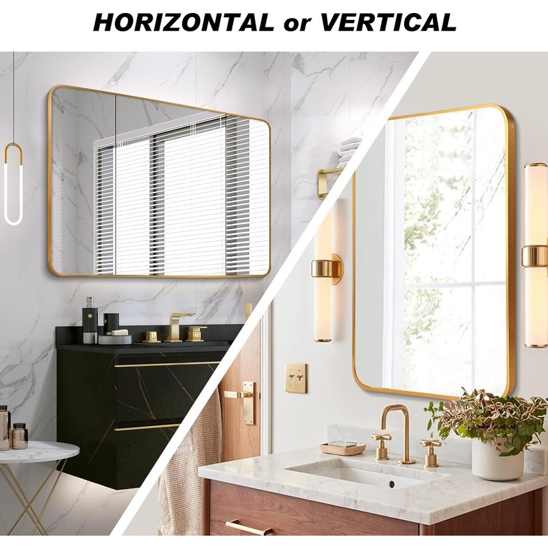 - Durable Gold Metal Frame Bathroom Mirror: Made of an aluminum frame that differs from standard mirrors, it features shatter-proof burst-proof. Safe and stable, waterproof, non-rusting, non-deformed shape