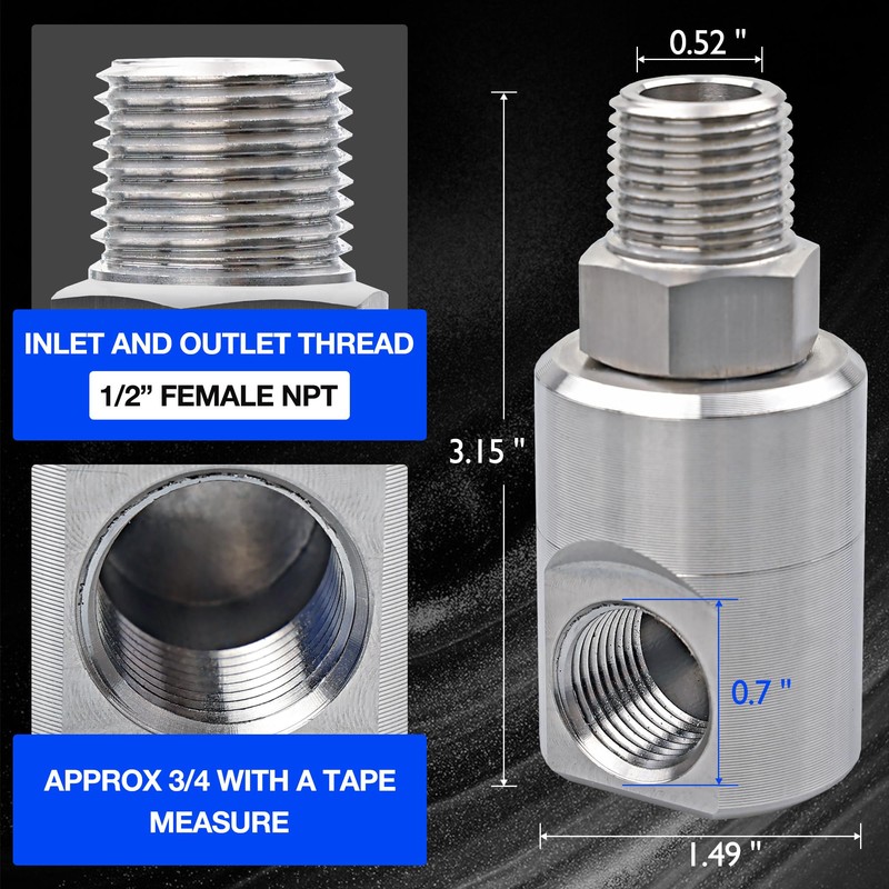 Inlet and Outlet Thread: 1/2inch female NPT(approximate 3/4 inch with a tape measure)