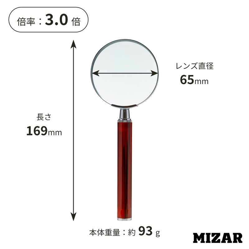 Misar Tech RH-1321 Magnifier 3x Handheld Magnifier Wood Grain Made in Japan Lens Diameter 2.6 inches (65 mm) Brown