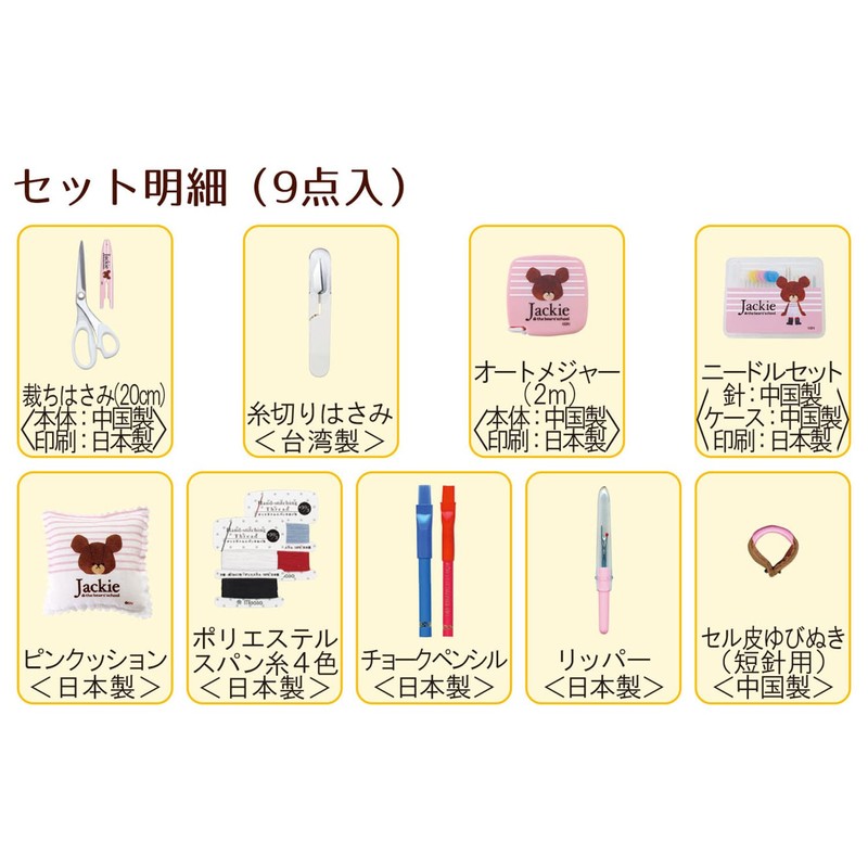 • A complete set of 7.9 inches (20 cm) sewing scissors in a bag that prevents spills from being inside