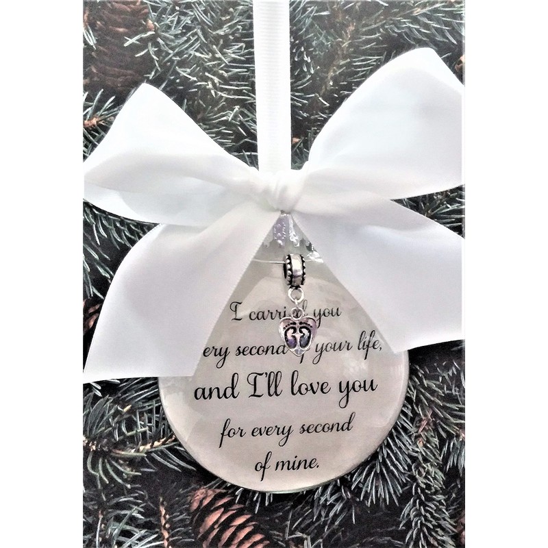 Miscarriage Memorial Ornament for Mothers I Carried You Every Second in Memory of Pregnancy Loss with footprint charm
