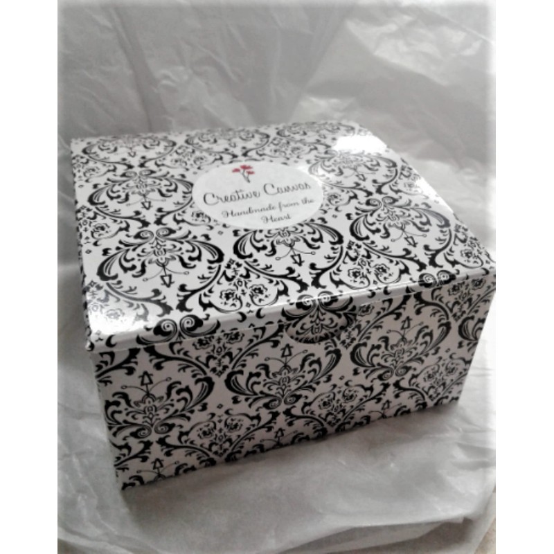 Your ornament comes ready to give in a gift box tied with a satin ribbon (packed inside a sturdy outer box as well).