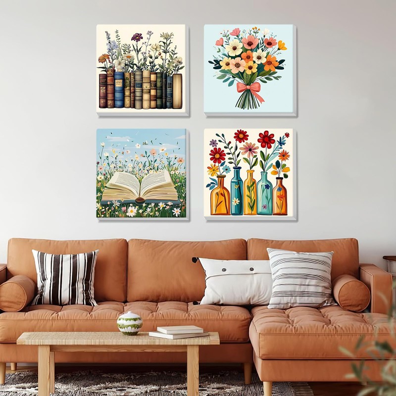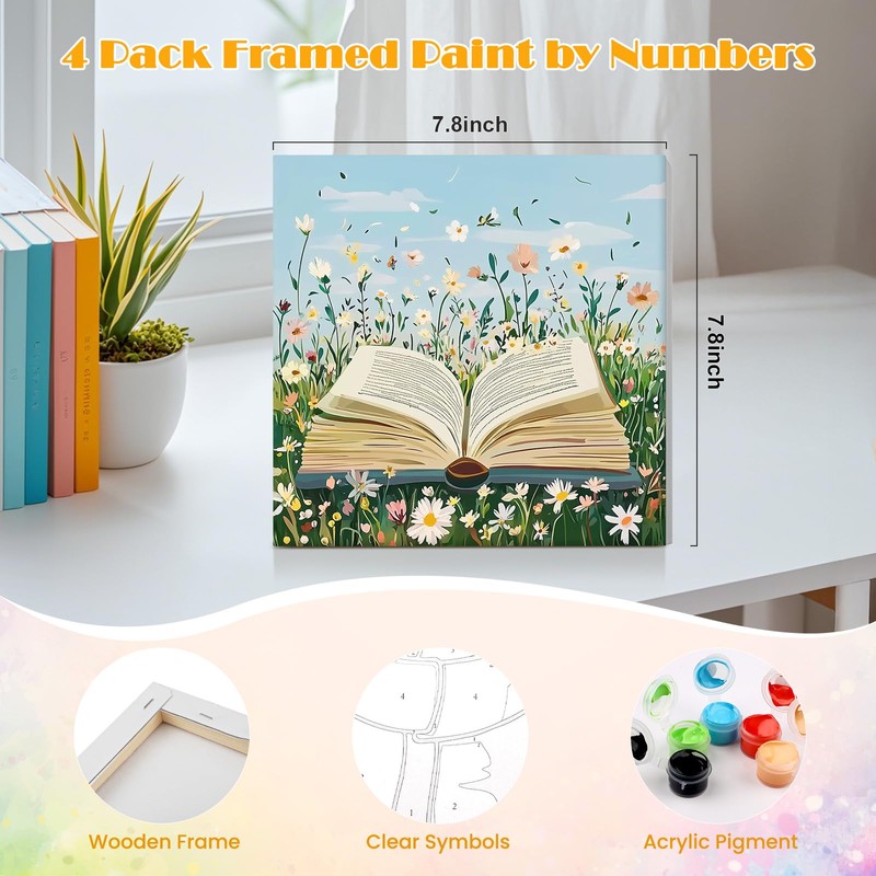 MISCER 4 Pack Flower Paint by Numbers for Adults Beginner, Book Paint by Number Kits for Kids, DIY Acrylic Oil Painting Suitable for Home Decoration (8x8inch)