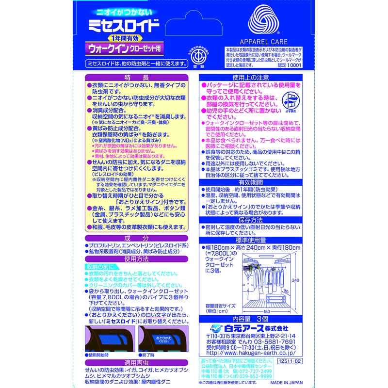misesuroido Walk-In Closet for Unscented Type 3 Pack