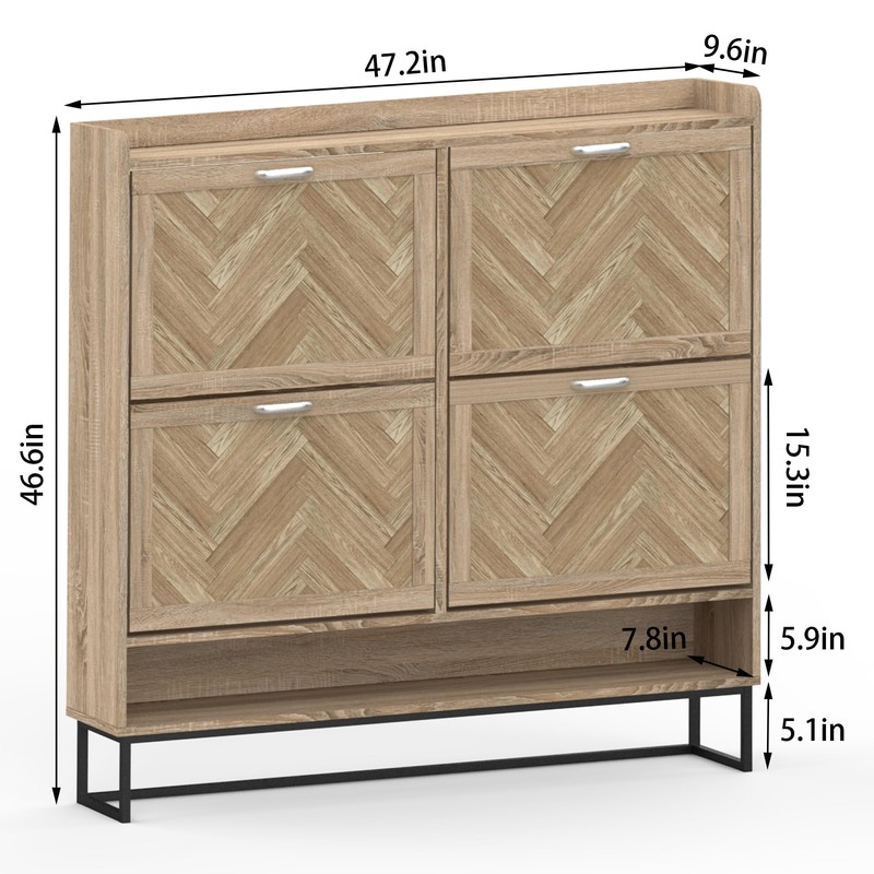 MISHAO Shoe Cabinet Storage for Entryway, Boho Narrow Hidden Shoe Cabinet with 4 Flip Drawers and Metal Legs, Freestanding Slim Shoe Organizer for Entryway, Natural
