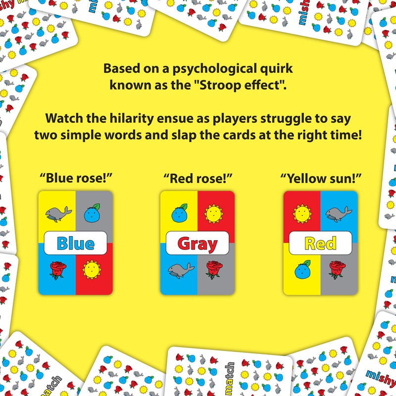 - A unique party game based on the Stroop effect—say two simple words and slap the card pile at the right time.