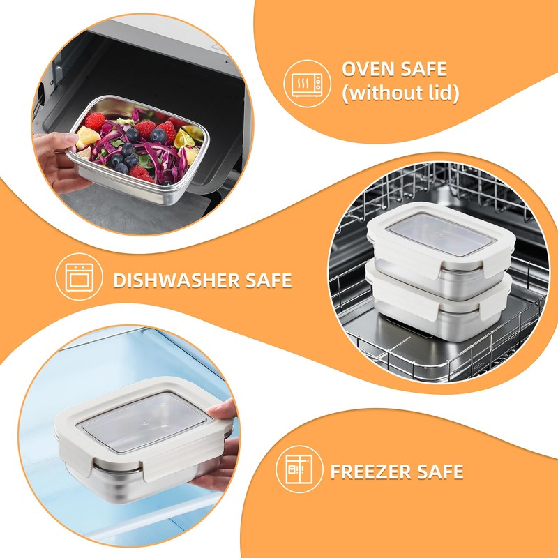 - LEAKPROOF & REUSABLE - Misichao stainless steel food container is made of food-grade 304 stainless steel, sturdy and rust-resistant. The BPA-FREE airtight silicone seal means you can use them for a food container without odours and air, getting in or out! The tight-sealing lock in freshness and prevent spills or leaks, keeping food fresh in the refrigerator, freezer, or on the go.