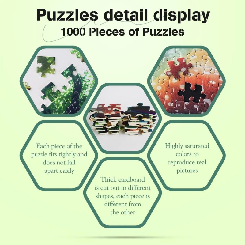 【Relaxing & Brain Training】: Completing 1000 pieces jigsaw puzzles is a fun and worthwhile way to spend our time. It can enhance our mood, improve cognitive abilities, and boost short-term memory. For puzzle enthusiasts, a 1000 piece puzzle is a perfect challenge.