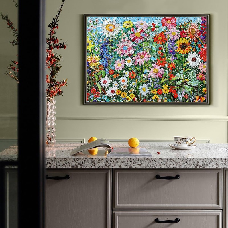 MISITU Puzzle 1000 Pieces for Adults - Colourful Flowers in Mosaic - Art Puzzle 1000 for Children from 14 Years