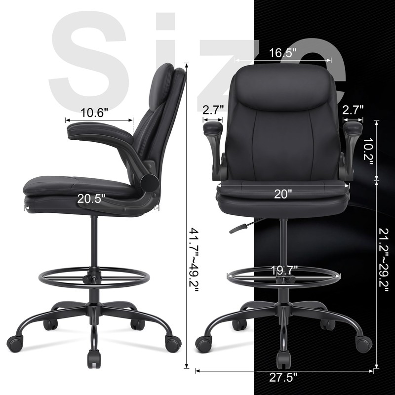 - 【Product size】: Chair height: 41.7 to 49.2inches. Cushion height: 21.2 to 29.2 inches from the floor. Armrest height: 31.4 to 39.4 inches from the floor. Cushion front and back distance: 20.5 inches. Cushion width: 20 inches.