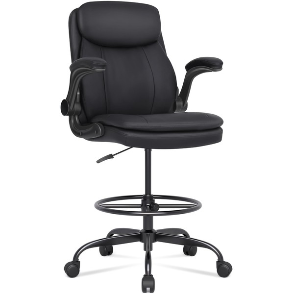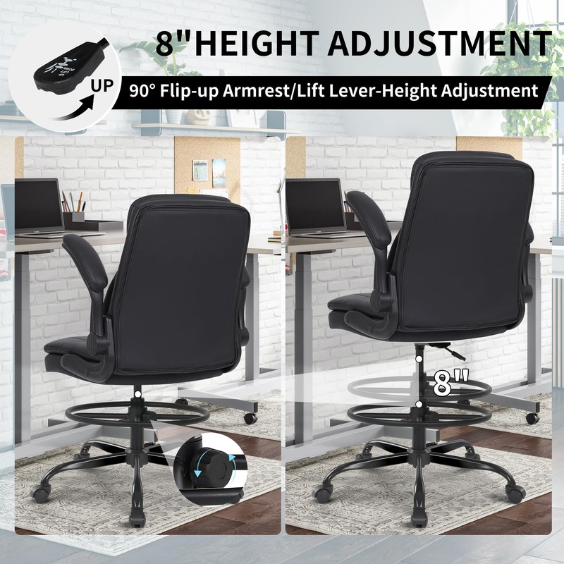 Misolant Tall Office Chair, Drafting Chair for Standing Desk, High Desk Chair with Adjustable Height and Flip-up Arm, Leather Office Drafting Chair, High Office Chair for Counter Height Desk